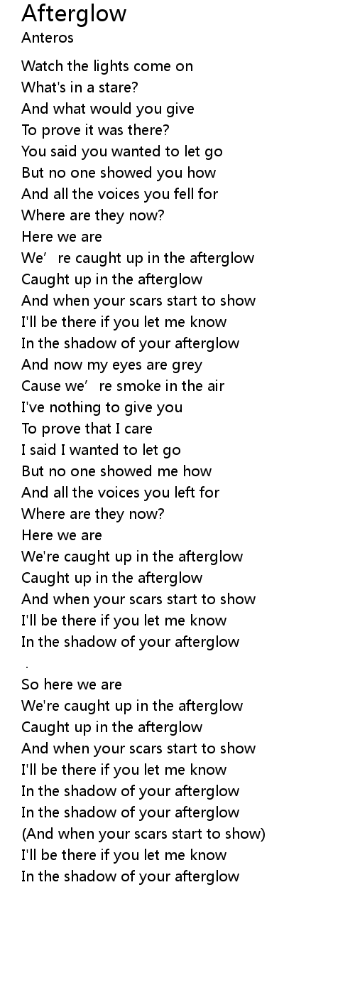 | [00:55.17] | We' re caught up in the afterglow |