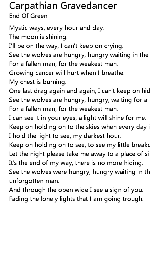 See the wolves were hungry, hungry waiting in the fields, for a fallen man, the unforgotten man. |