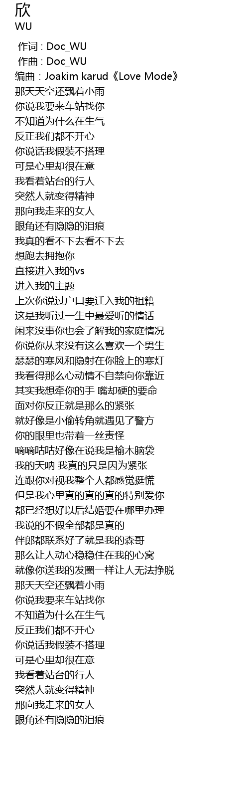 | [00:00.000] | 作词 : Doc_WU |