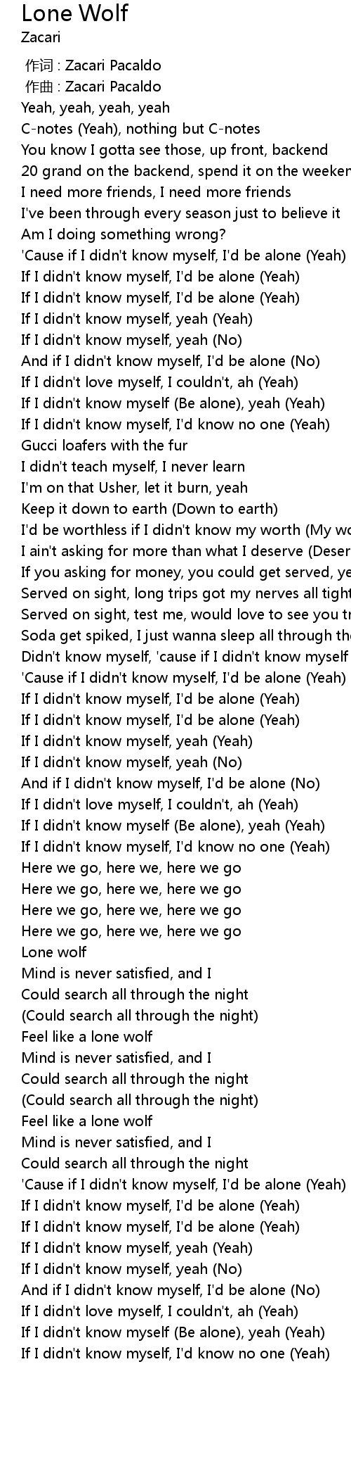 | [02:35.83] | Feel like a lone wolf |