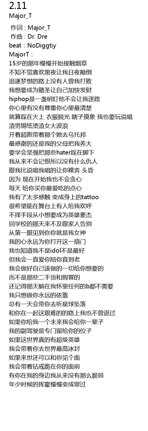 | [00:00.000] | 作词 : Major_T |
