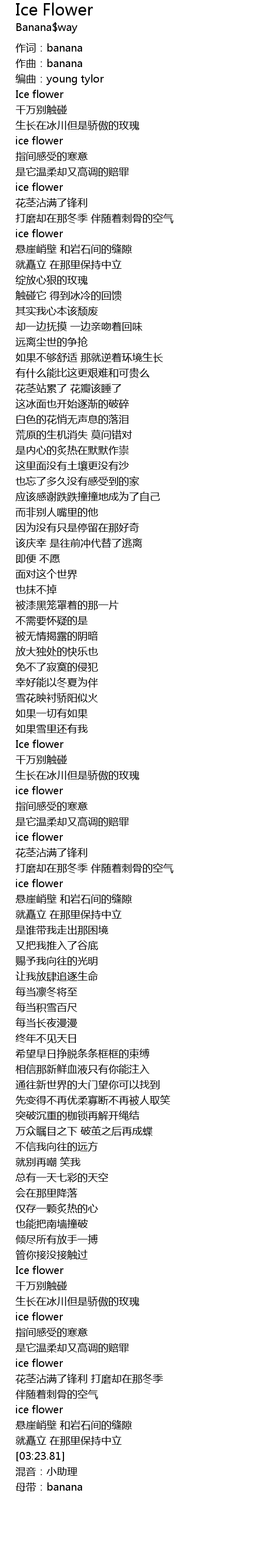 | [00:23.32] | 生长在冰川但是骄傲的玫瑰 |