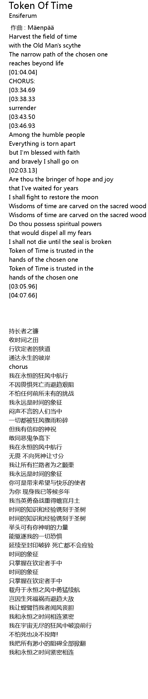 | [04:01.88][03:46.93][01:59.47][01:28.43] | I am bound forever with Token of Time |