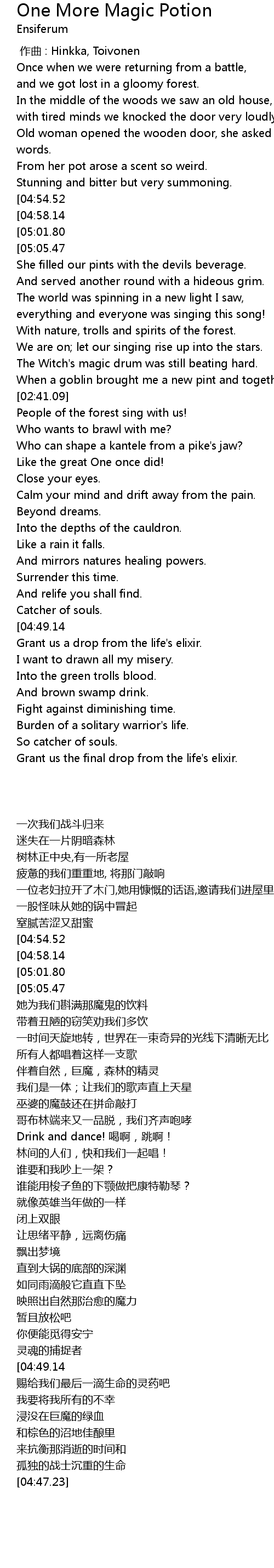| [01:35.37][04:54.52] | 给我一瓶魔药吧,它能扶平我疼痛的伤口 |