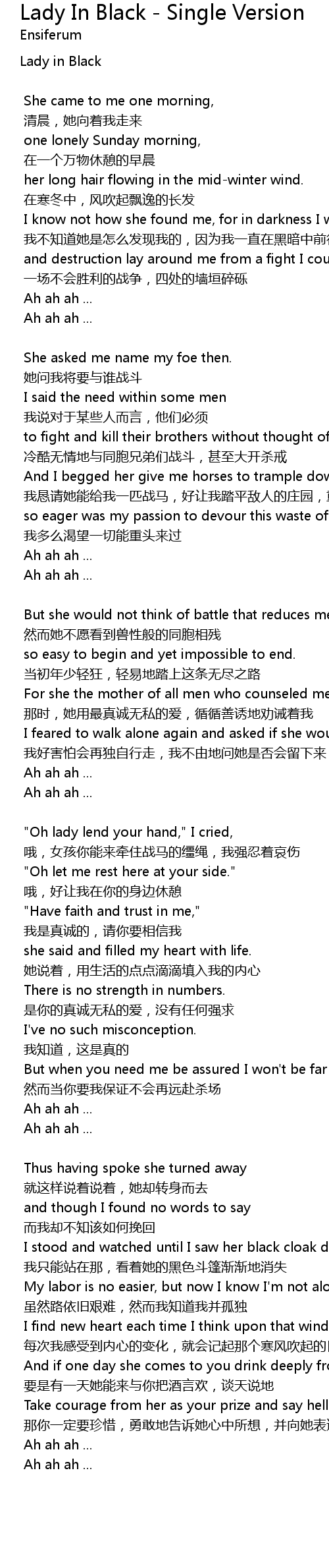 | 歌曲 | Lady In Black - Single Version |