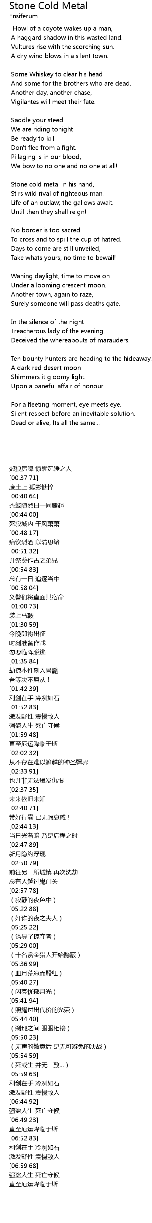 | [01:56.39] | 强盗人生 死亡守候 |