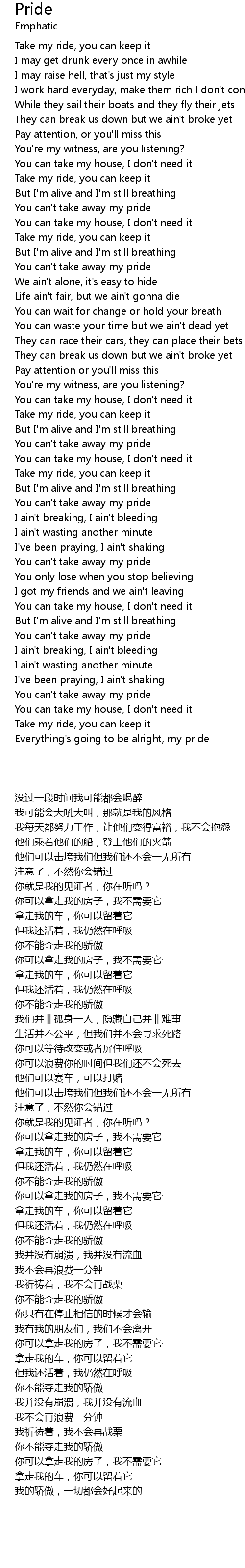 You can't take away my pride |