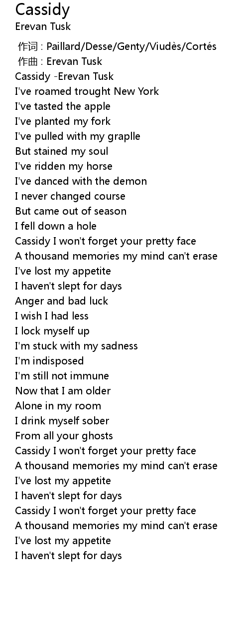 | [00:50.480] | Cassidy I won't forget your pretty face |