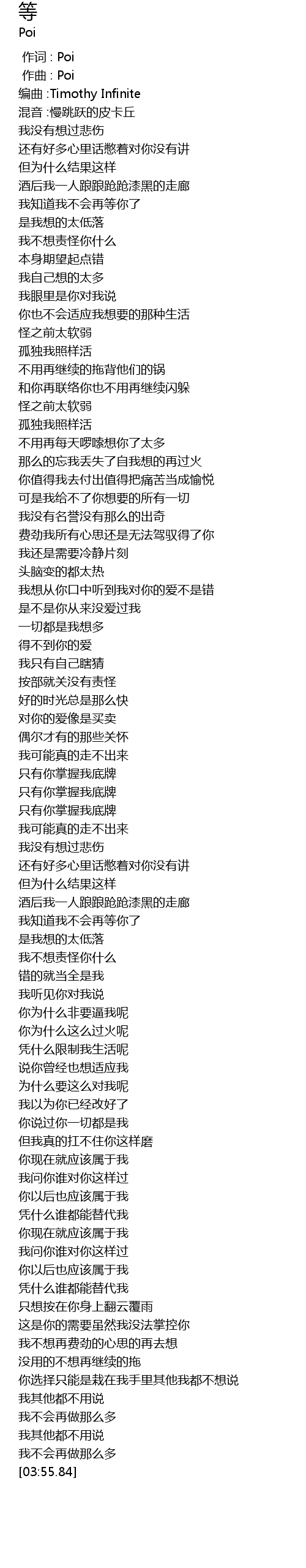 | [00:12.70] | 编曲 :Timothy Infinite |