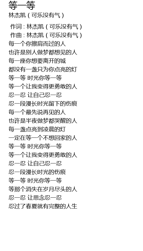 | [00:01.000] | 作曲 : 林杰凯(可乐没有气) |