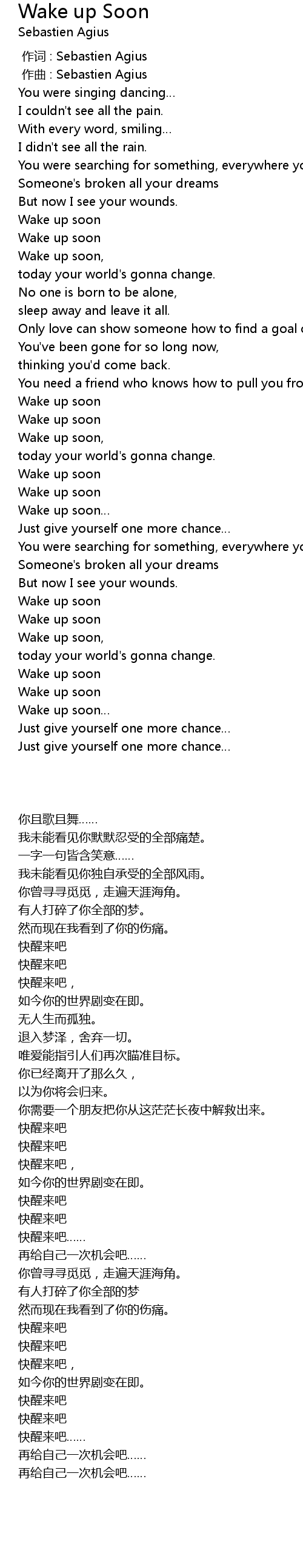 | [00:00.000] | zuò cí : Sebastien Agius |