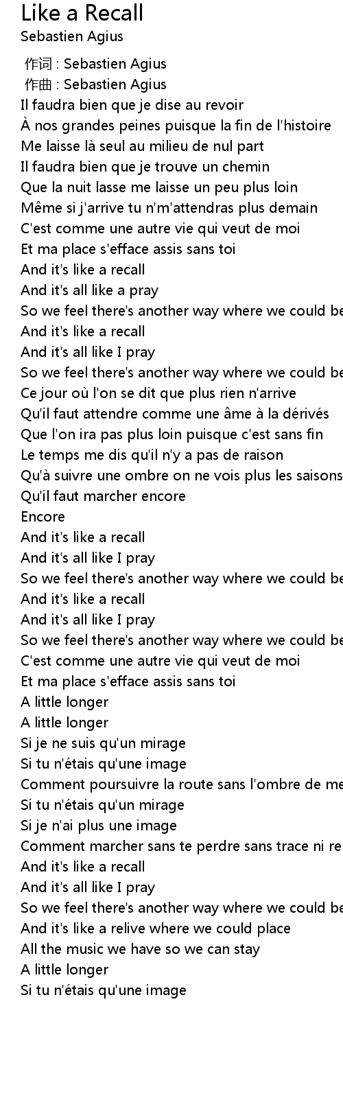 | [00:01.000] | zuo qu : Sebastien Agius |