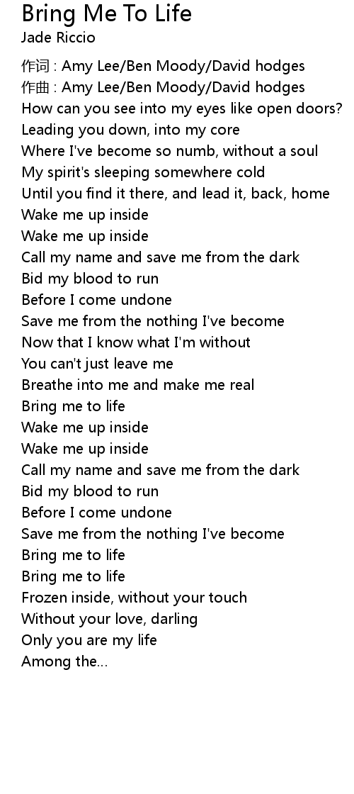 | Bring me to life | |