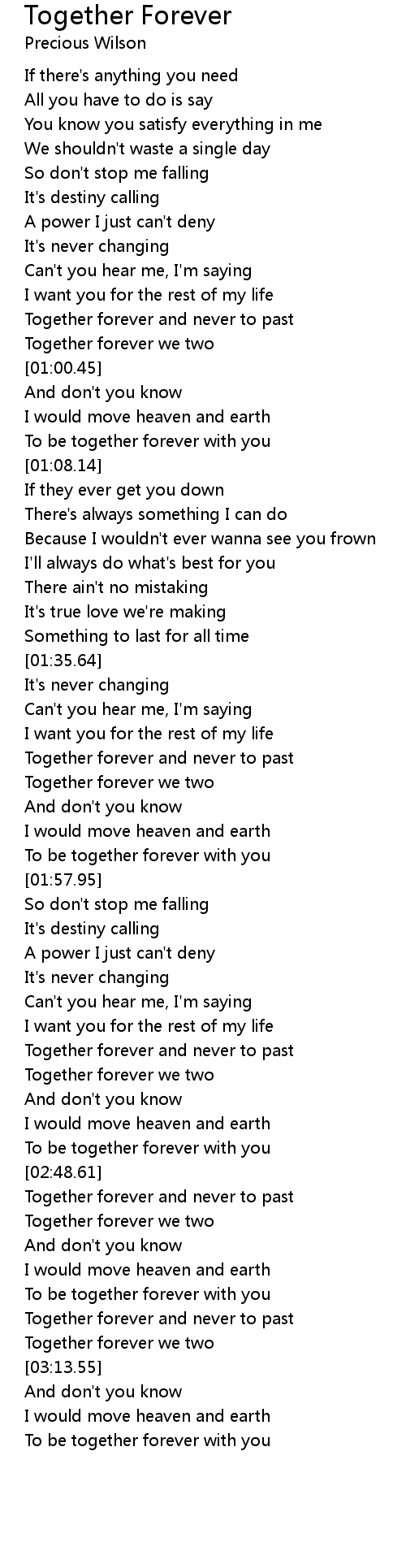 Together forever and never to past |