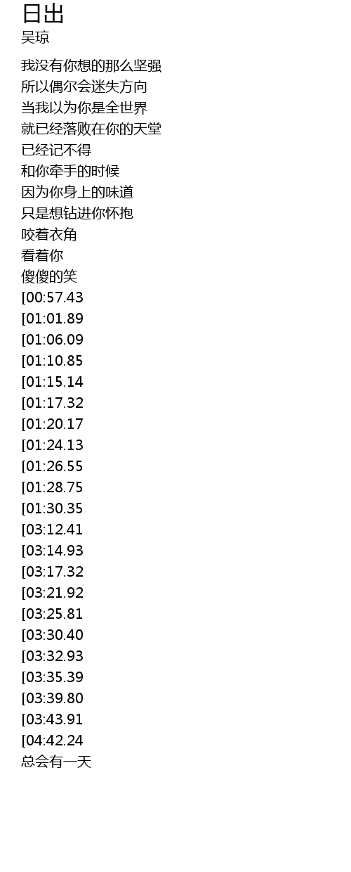| [04:51.89][04:42.24][03:46.12][02:09.15] | wo men zai shan ding kan ri chu |