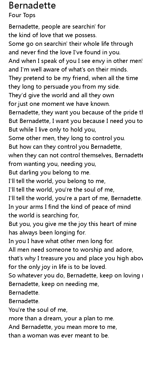 Bernadette, keep on needing me, |