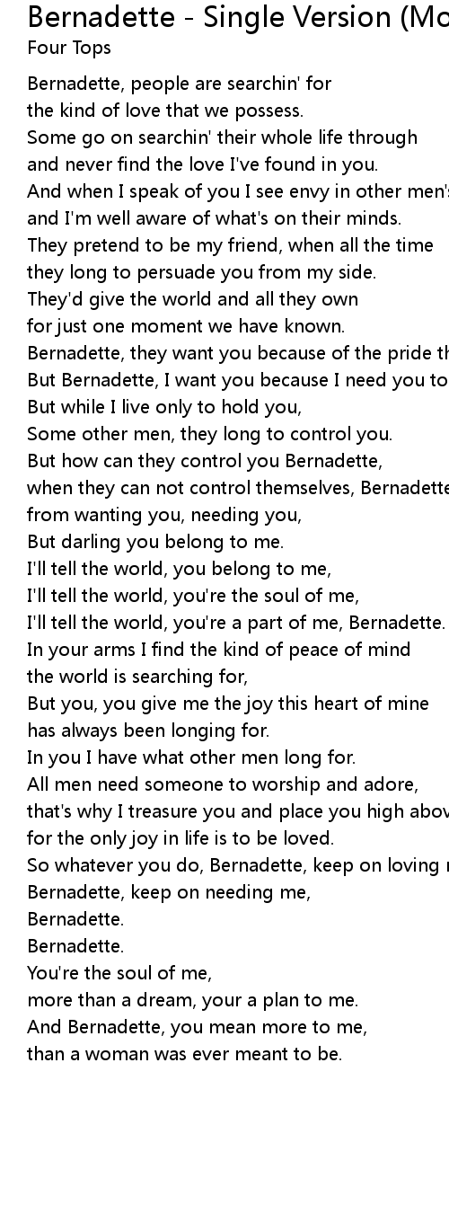 Bernadette, keep on needing me, |