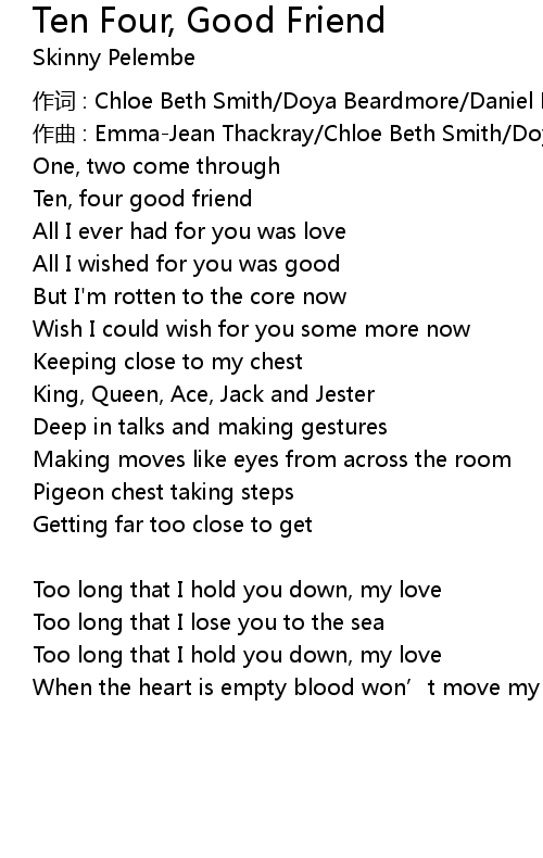 | 歌曲 | Ten Four, Good Friend |