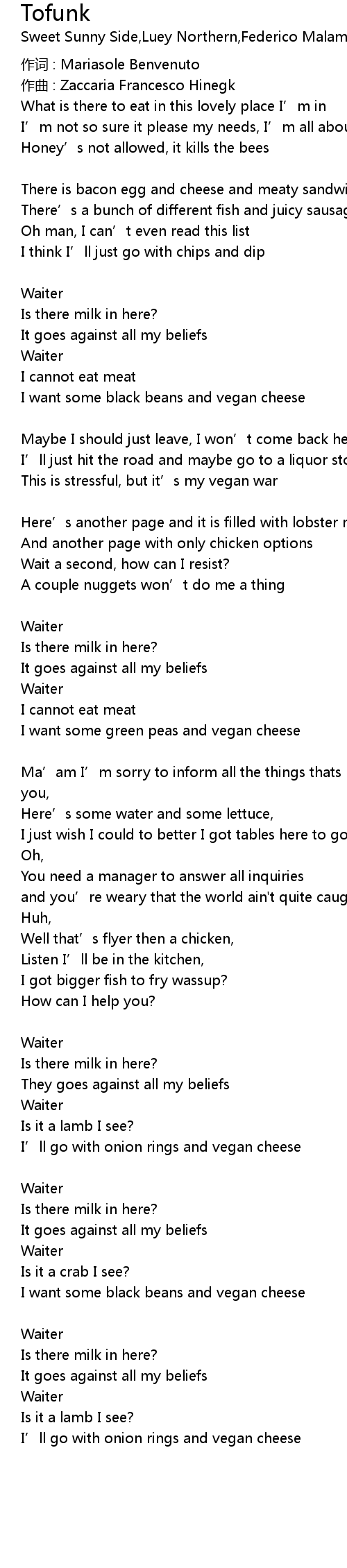 | 歌曲 | Tofunk |