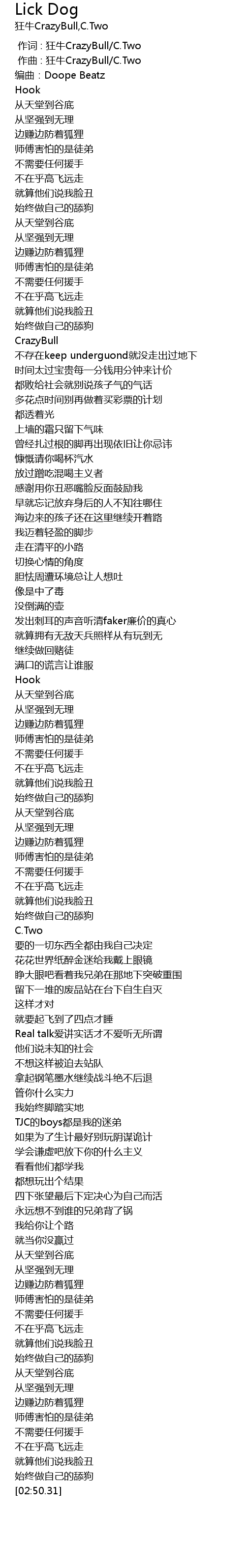 | [00:00.000] | 作词 : 狂牛CrazyBull/C.Two |