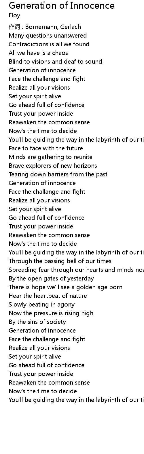 | 歌曲 | Generation of Innocence |