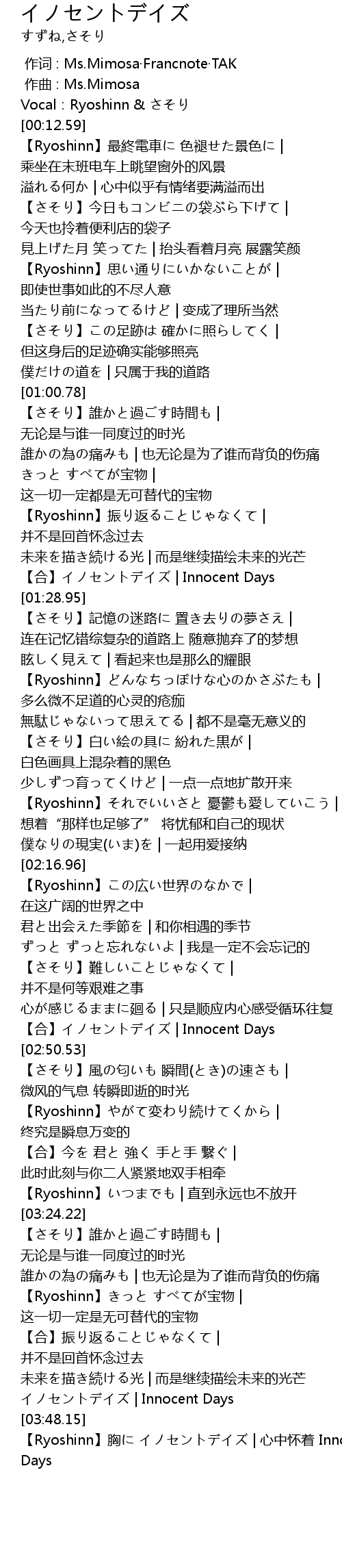 | [03:44.54] | イノセントデイズ | Innocent Days |