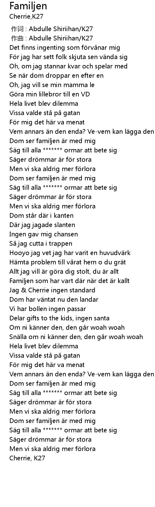 | [01:35.65] | Hämta problem till vårat hem o du grät |