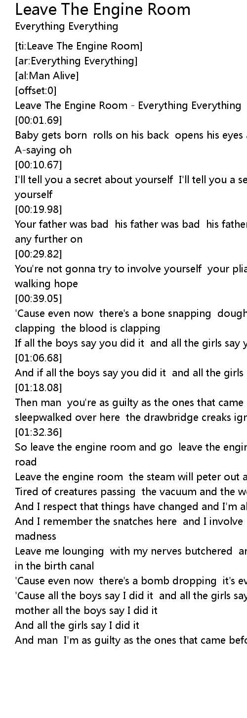 'Cause even now there's a bone snapping doughy embryo bloody hands clapping the blood is clapping |