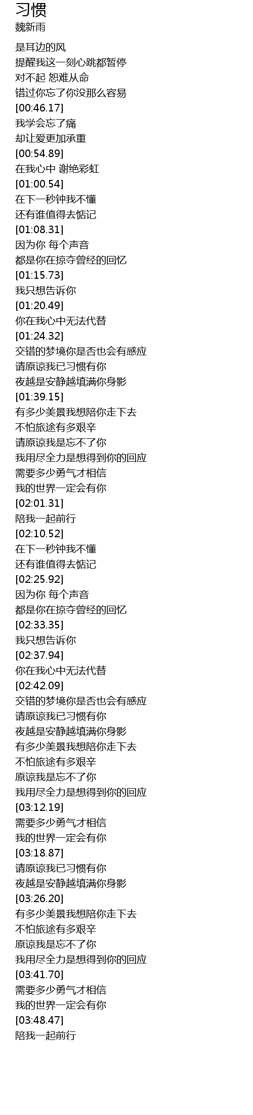 | [02:49.95] | qǐng yuán liàng wǒ yǐ xí guàn yǒu nǐ |