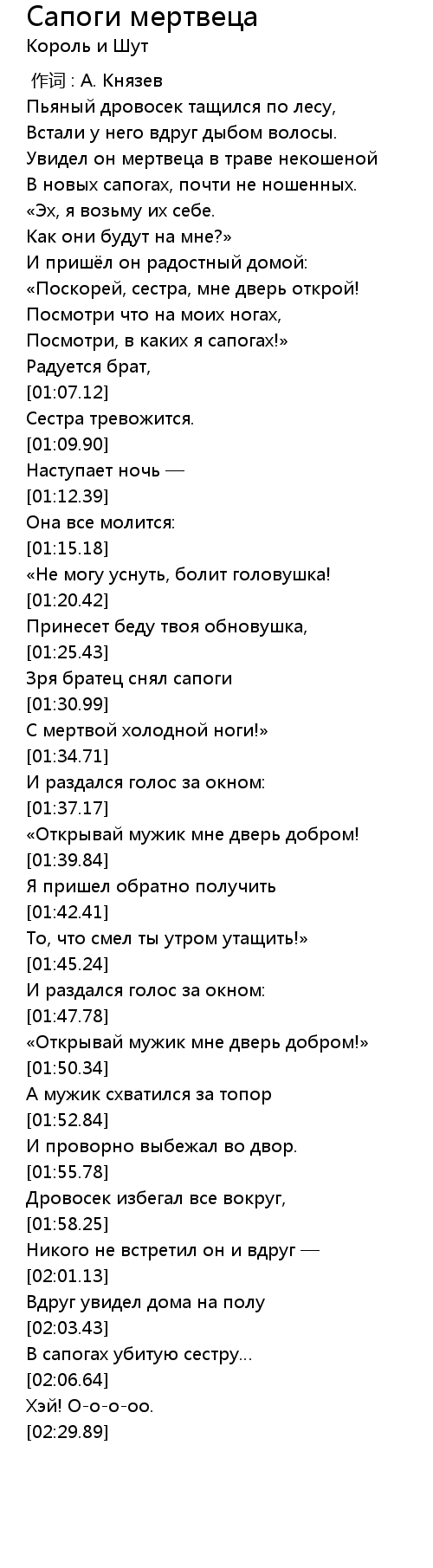 Сапоги мертвеца 歌词