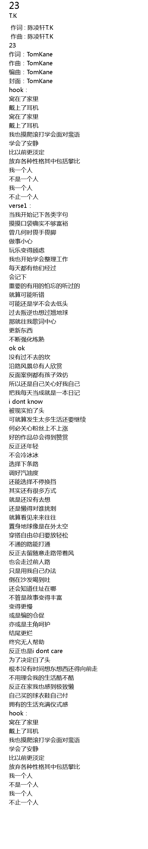 | [00:00.000] | 作词 : 陈凌轩T.K |