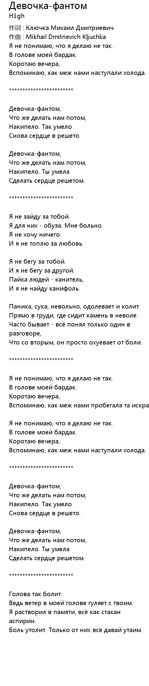 作词 : Ключка Михаил Дмитриевич |