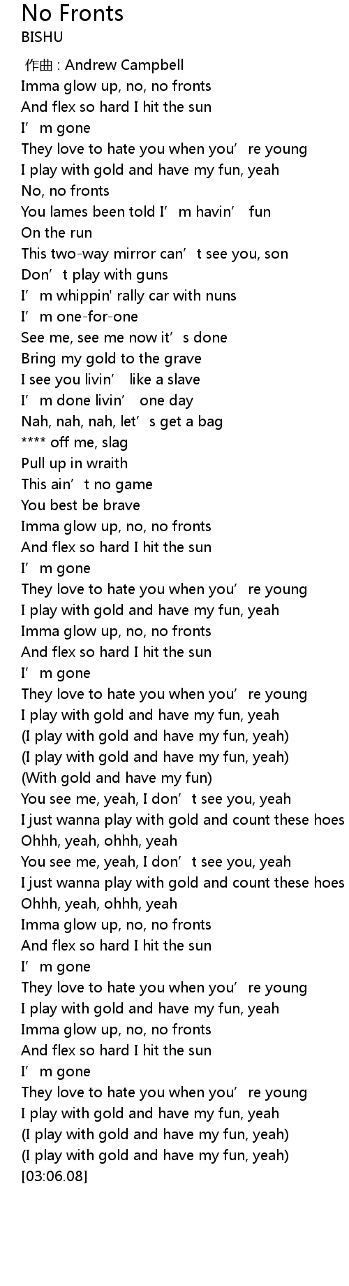 | [00:51.86] | Imma glow up, no, no fronts |