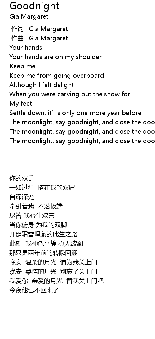 | [01:58.45] | 晚安 温柔的月光 请为我关上门 |