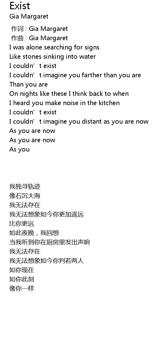 | [00:00.000] | 作词 : Gia Margaret |