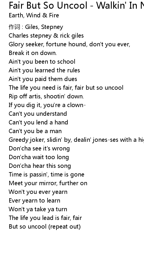 | 歌曲 | Fair But So Uncool - Walkin' In N'Awlins Mix |