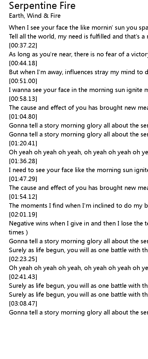 | [03:09.03] | Gonna tell a story morning glory all about the serpentine fire |
