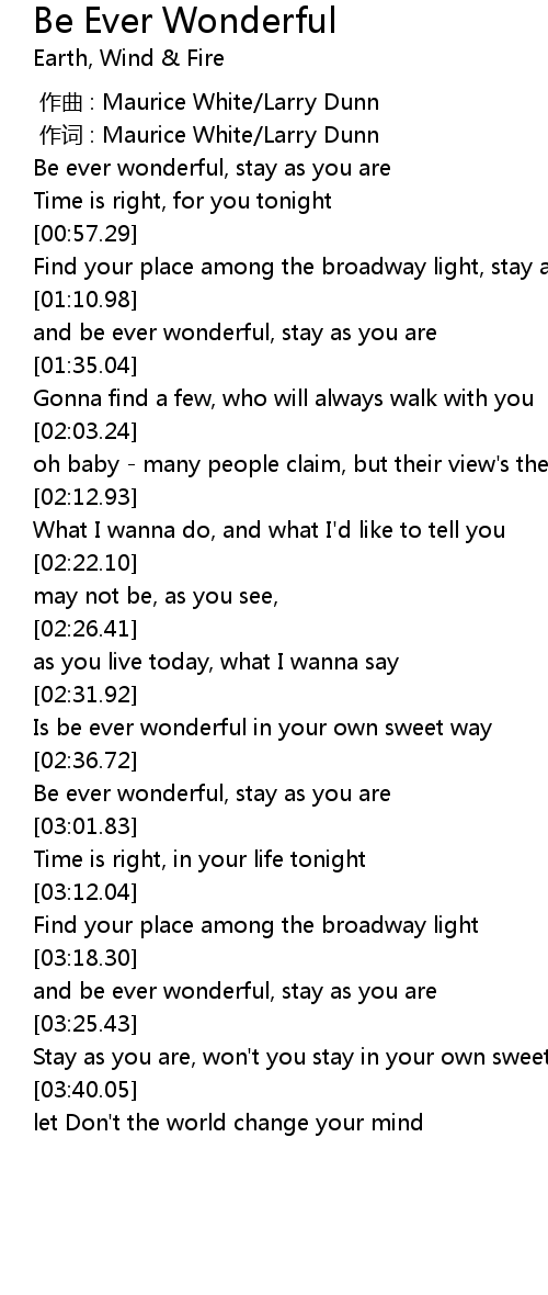 | [03:20.87] | and be ever wonderful, stay as you are |