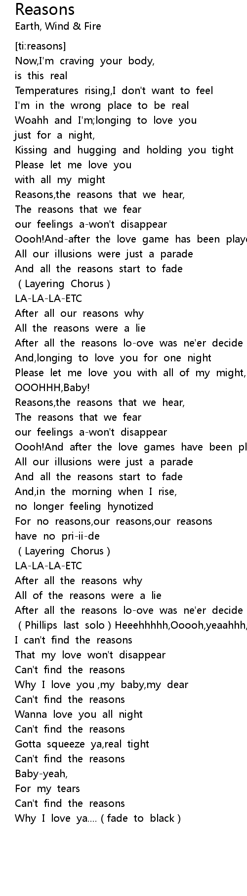 | [00:41.500] | Reasons,the reasons that we hear, |