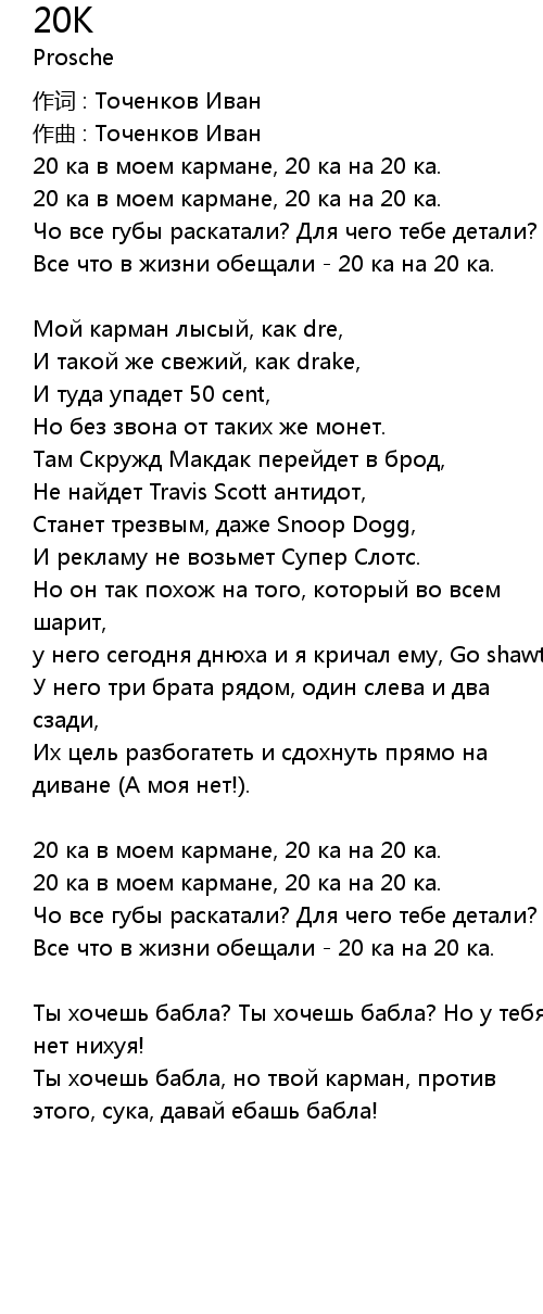 20 ка в моем кармане, 20 ка на 20 ка. |