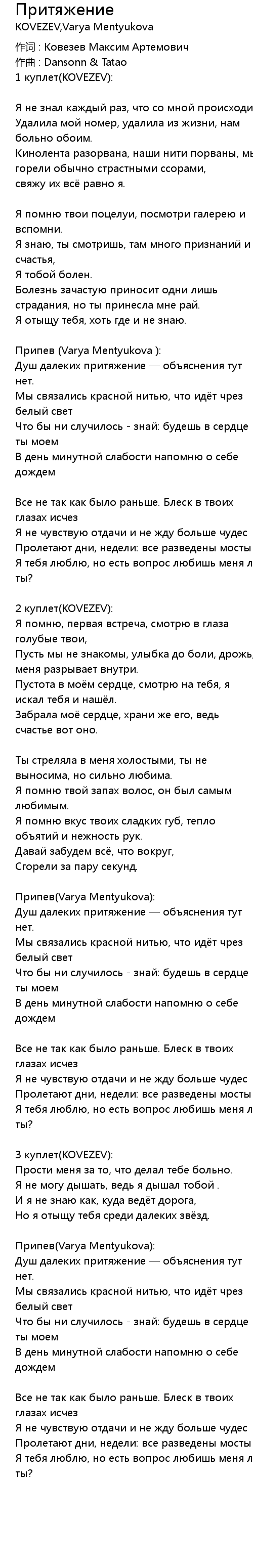 Притяжение 歌词