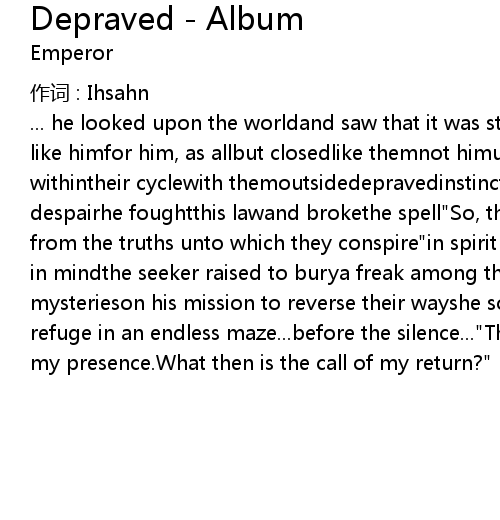 | ... he looked upon the worldand saw that it was still depravedas himthough not like himfor him, as allbut closedlike themnot himunawarehe wasalready caught withintheir cyclewith themoutsidedepravedinstinctiverebellionpossessedby bestial despairhe foughtthis lawand brokethe spell" So, this is why I built my empirefled from the truths unto which they conspire" in spirit born a strangera counterpart in mindthe seeker raised to burya freak among the blindencountered with mysterieson his mission to reverse their wayshe sought a life among the deadwith refuge in an endless maze... before the silence..." This can not be the purpose of my presence. What then is the call of my return?" |