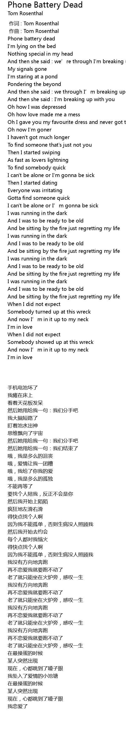 | 歌曲 | Phone Battery Dead |
