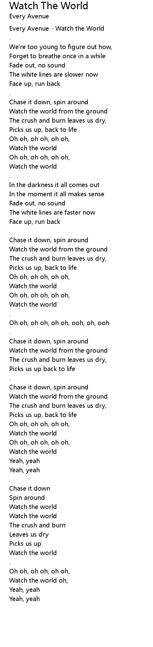 Watch the world oh, |