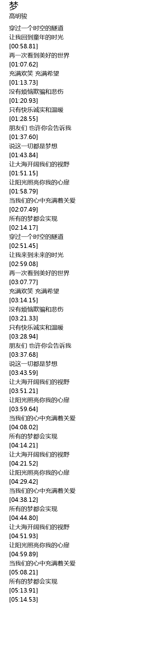 | [00:53.93] | 让我回到童年的时光 |