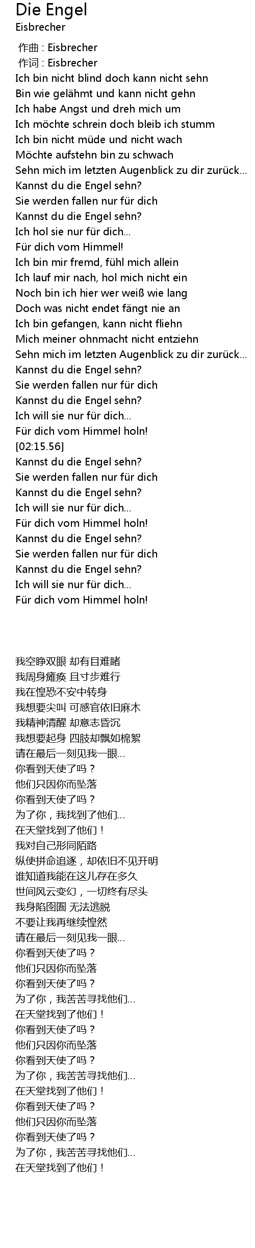 | [00:44.98] | Ich bin nicht mü de und nicht wach |