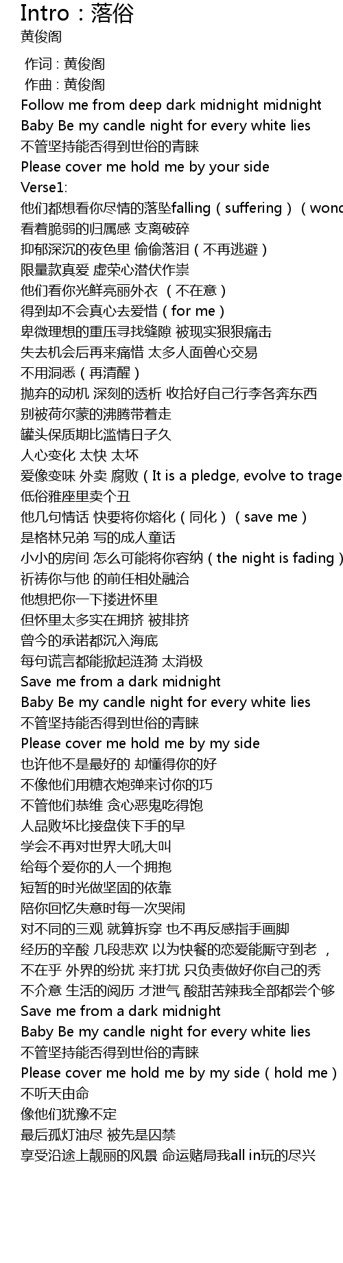 | 歌曲 | Intro:落俗 |