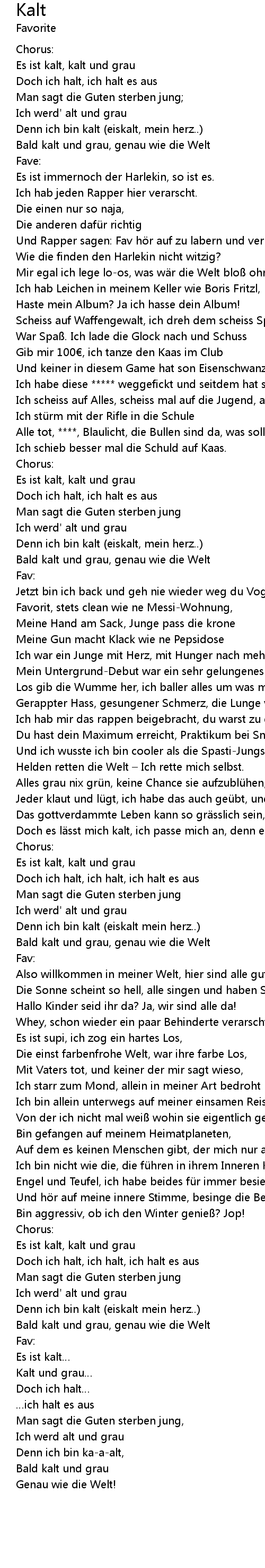 | Und Rapper sagen: Fav hör auf zu labern und verpiss dich | |