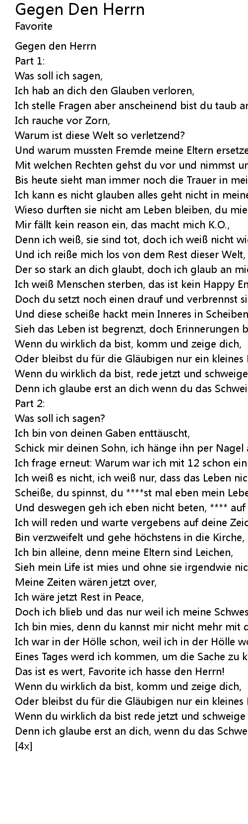 | Bin verzweifelt und gehe h chstens in die Kirche, um zu schei en, | |