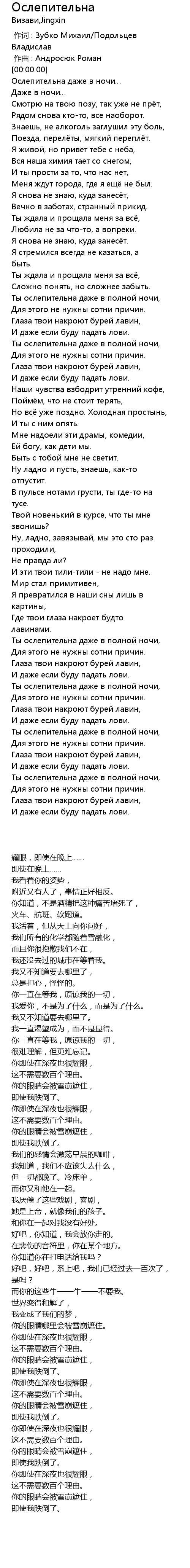 | [00:00.000] | 作词 : Зубко Михаил/Подольцев Владислав |